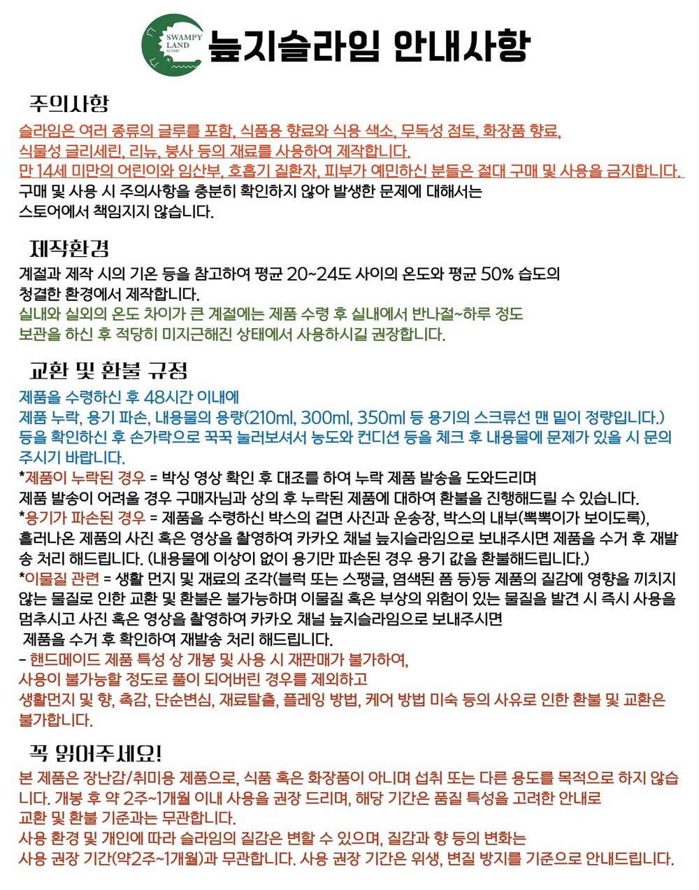 농도, 질감, 향, 탈출, 양줄음 등 의 사유로 교환 및 반품 환불 은 불가능 합니다.